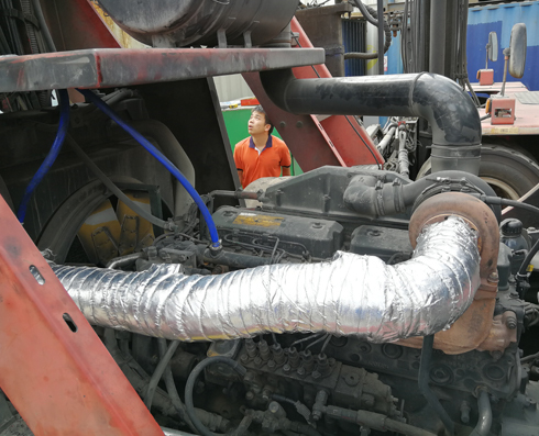廣州市新力金屬有限公司對中集集團旗下的深圳左炮臺堆場排放超標堆高機進行尾氣后處理改造。中國國際海運集裝箱股份有限公司(簡稱:中集集團),是一家為全球市場提供“現代化交通運輸裝備和服務”的企業集團,主要經營集裝箱、道路運輸車輛、能源、化工及食品裝備、海洋工程、機場設備等裝備的制造和服務。 ???????堅持綠色發展理念,樹立“綠水青山就是金山銀山”的強烈意識。堆高機柴油發動機排出的尾氣是一種高溫高速的脈動性氣流,噪聲大,污染重,特別是排出的碳顆粒,若不加處理直接排放,對大氣環境會造成嚴重污染,它可以深入人的肺部損傷肺內各種通道的自凈作用,從而使其他化合物發揮致癌作用。這些碳顆粒上還吸附有很多有機物質,包括多環芳烴等,這些物質有不同程度的誘變和致癌作用。根據國家和深圳的環保要求,需要對該廢氣進行治理后達標排放。